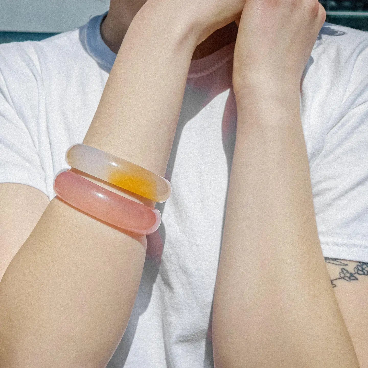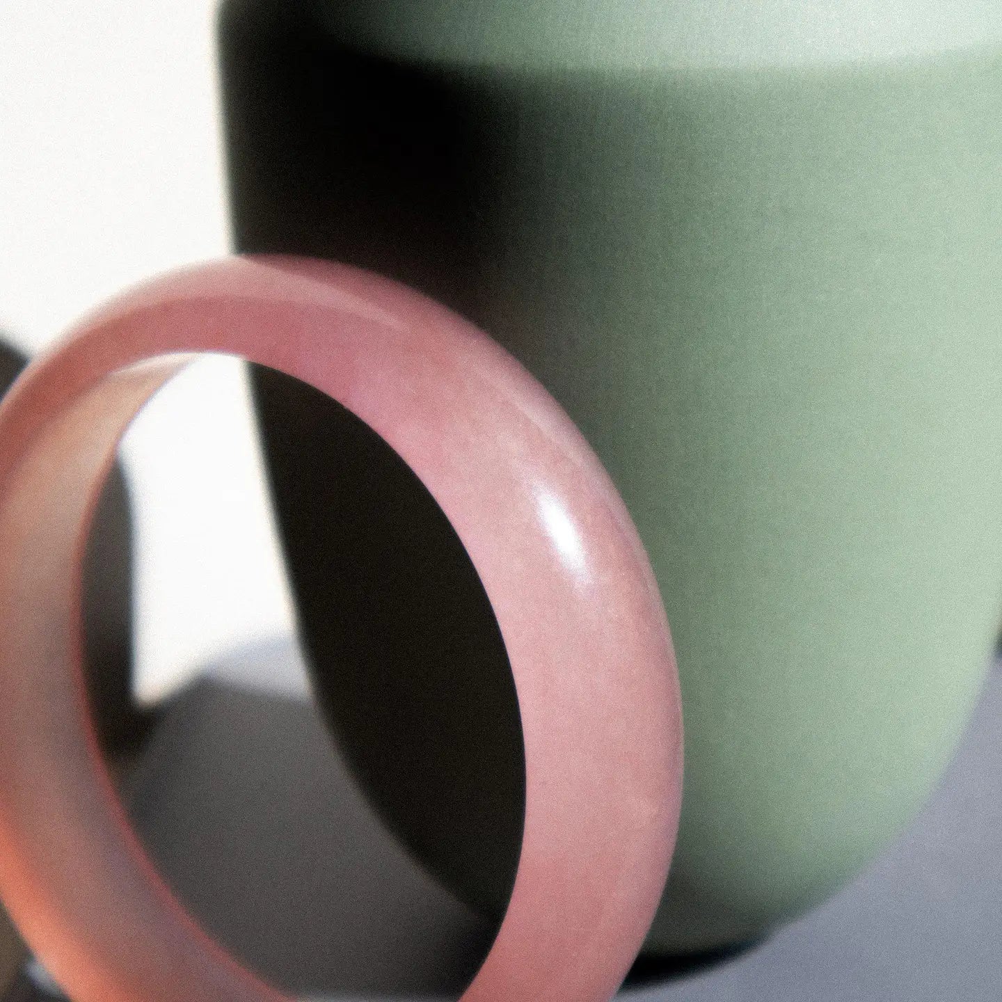 You know the warm, rosy hue your cheeks turn when you get a compliment? We've captured it. Our blush jade stone bangle arrives in a polished pink accented with delicate veining. It's as close to wearing your heart on your sleeve as you can get. Natural quartzite.