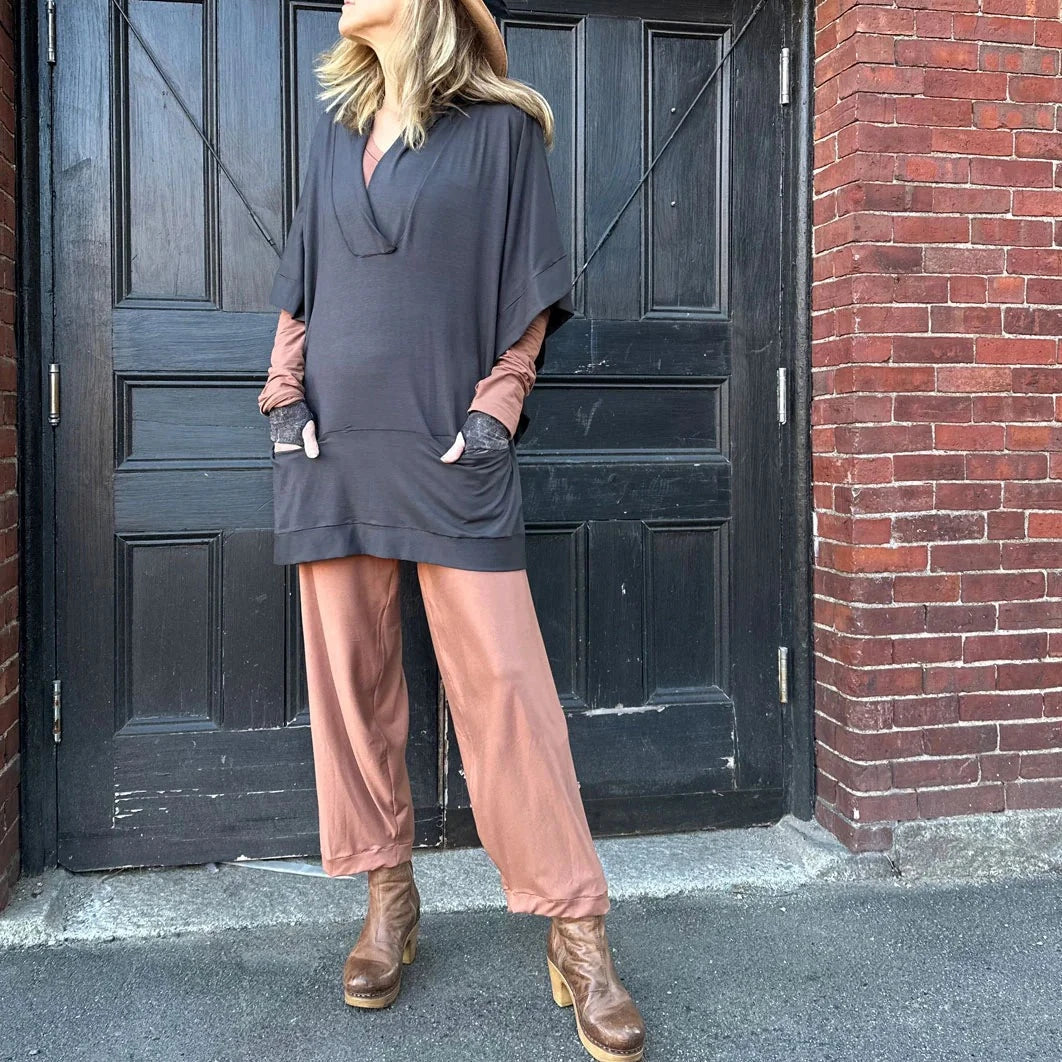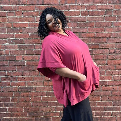 the FRIDA poncho is a suger® take on the classic outerwear staple. featuring a relaxed lapel + generous pockets, this oversized jacket is perfect for keeping your body warm while letting your arms breathe.