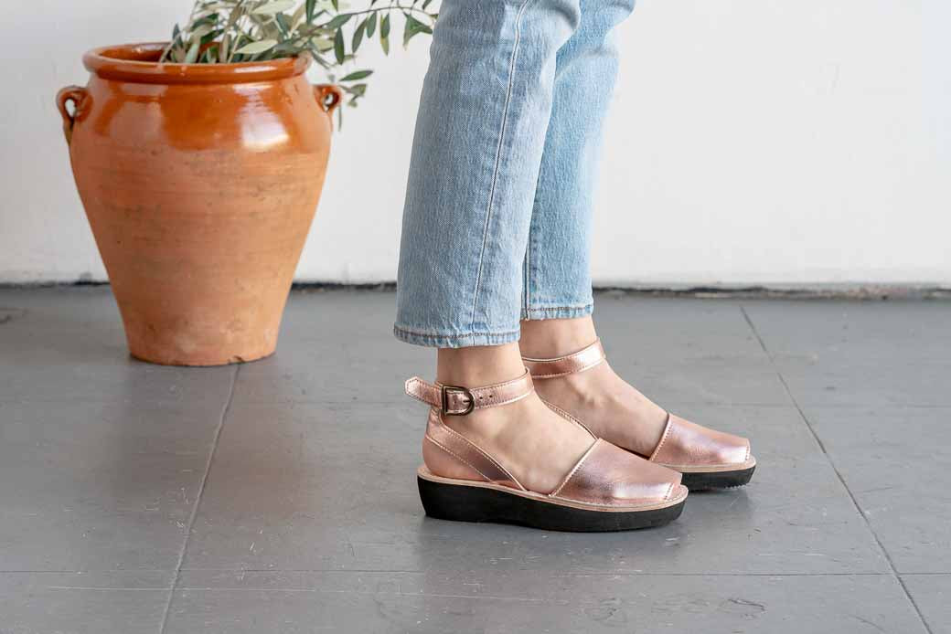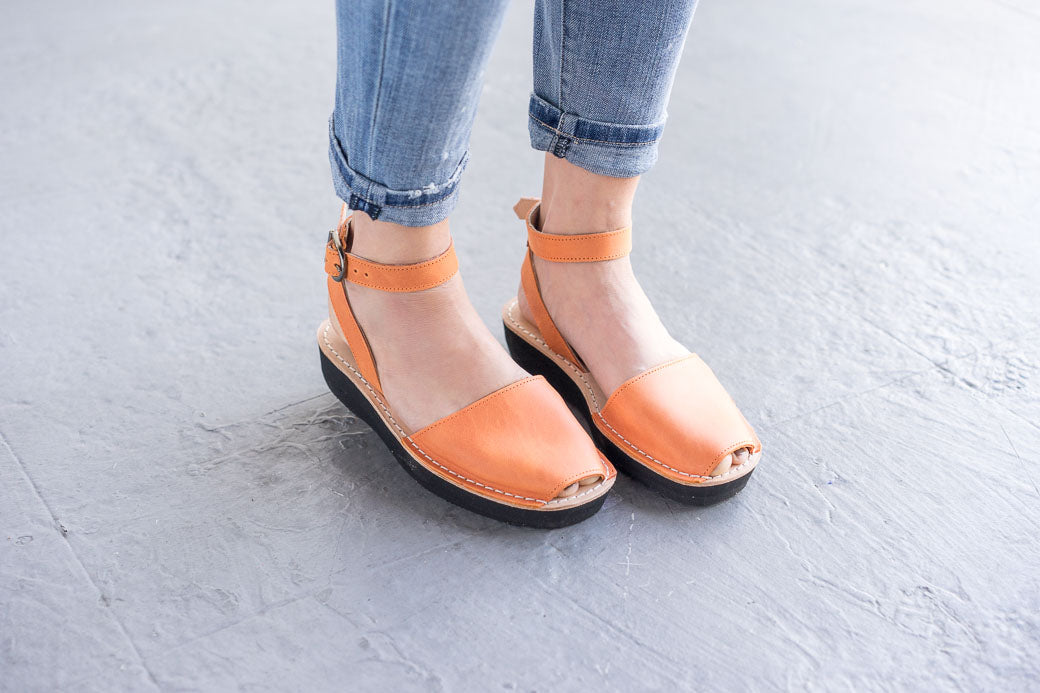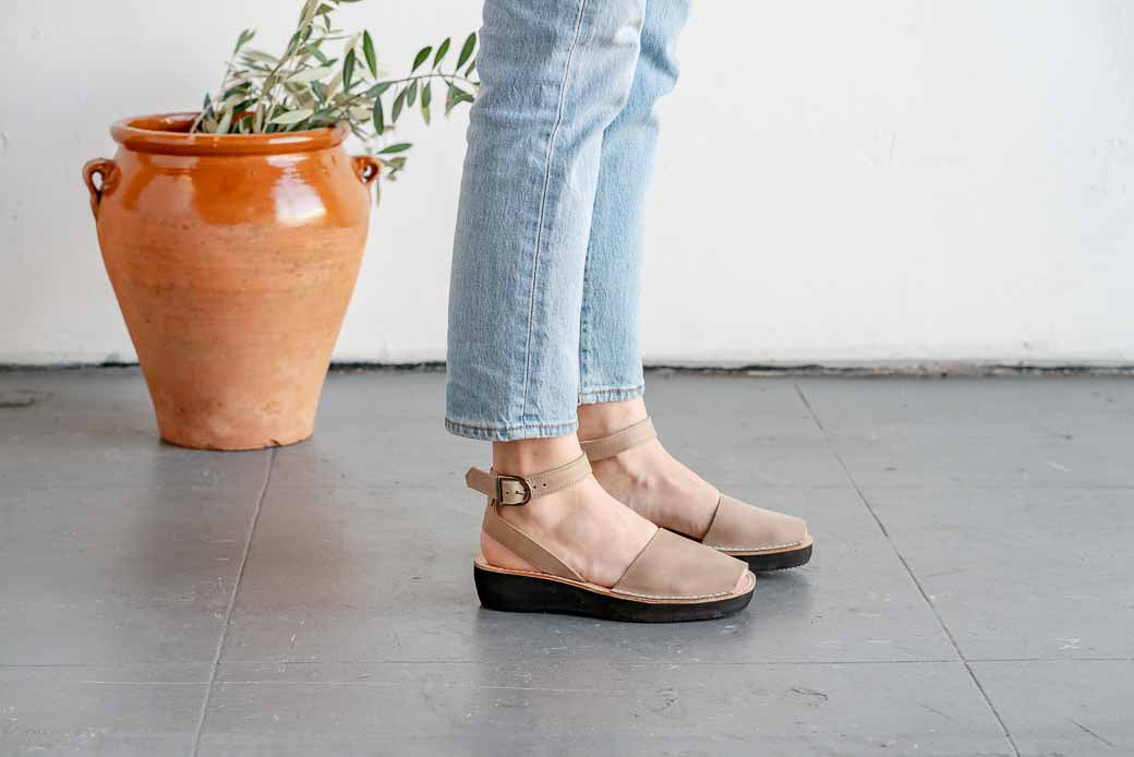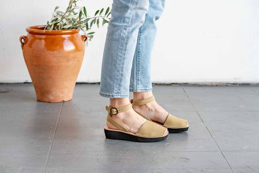 An easy-to-wear neutral that looks great with dresses, jeans, and skirts, these sandals offer both style & comfort. Handcrafted in Menorca, Spain by local artisans, these durable & versatile Avarca sandals are made with the finest all-natural full grain leather, have an ankle strap with a buckle closure for a secure fit, and feature a 1.5 inches (3.80 cm) lightweight platform sole.