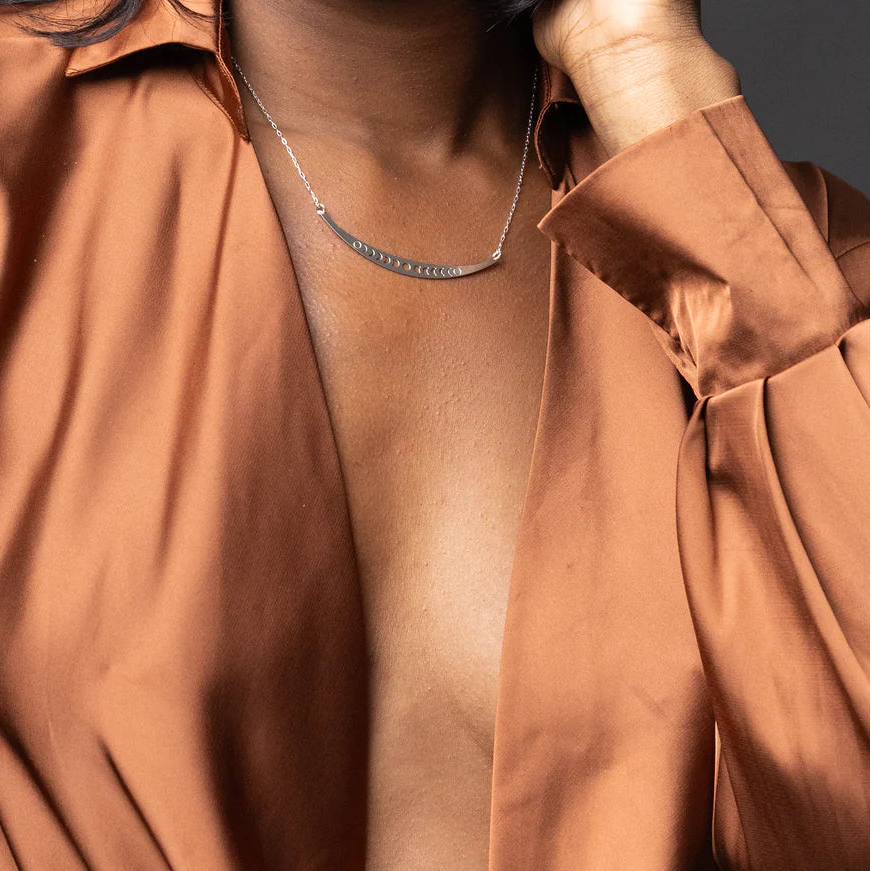 Design with an elevated dreaminess, the Moon Phase Necklace perfectly blends ancient symbolism and modern style. Astronomy and metaphor merge in this precious statement necklace, sure to become a treasured favorite.