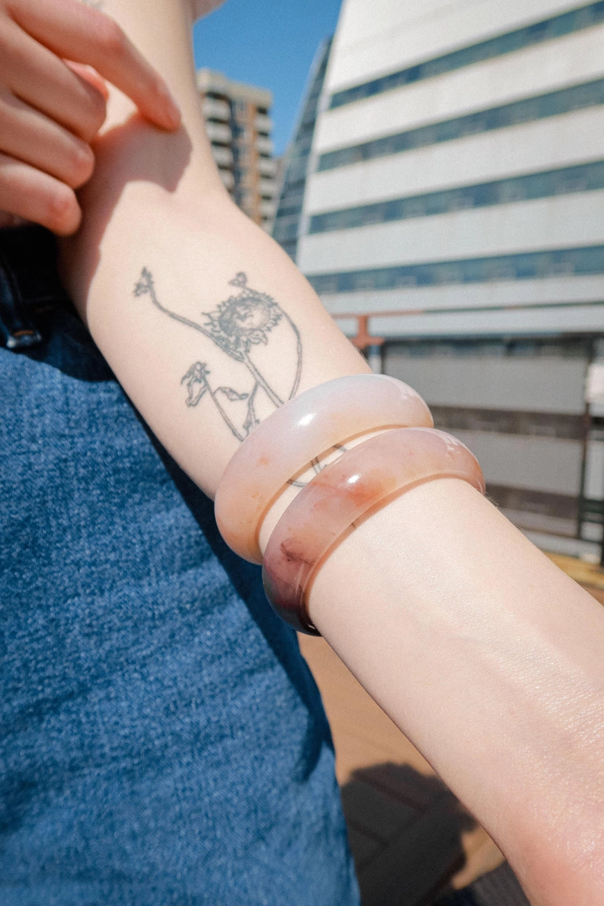 Life's a beach and I'm just playing in the sand. Our playground bangle comes in color variations of rich purples and sand shades. Like you, she plays well with others. Pair it with the playground stacking rings. Natural quartzite.