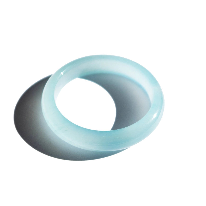 Here's your passport to an infinity pool in Bali. Our polished pool jade stone bangle comes in an icy blue quartzite with delicate silky veins. Natural quartzite. Made by handwork of carving and polishing.
